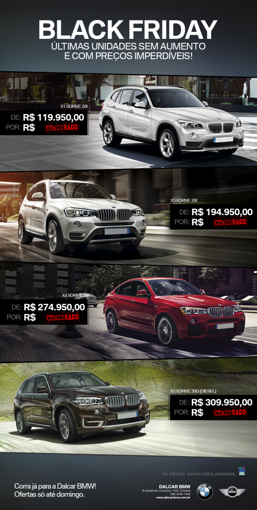 E a Dalcar BMW, claro, não podia ficar de fora dessa promoção. A concessionária estendeu as ofertas dos preços até domingo.