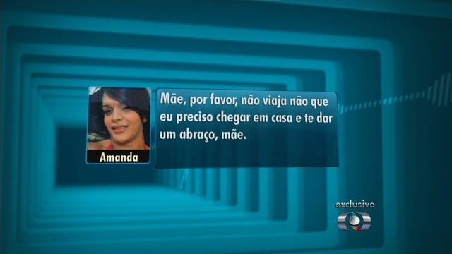 Mãe de Amanda, Iraídes Maria de Jesus conta que, embora o teor da conversa a tenha deixado preocupada, ela não tinha conhecimento de ameaças feitas pelo noivo da filha, Milton Severiano Ribeiro, conhecido como Miltinho da Van, que foi preso e confessou o assassinato. “Se ela estava sendo ameaçada, era dentro de casa. Ela não tinha mais o direito de falar comigo. Quando eles foram morar juntos, ele [noivo] tomou o celular dela e nao deixou ela comunicar com ninguém. Eu fiquei muito preocupada, liguei para as amigas dela, procurando notícia dela”, disse.