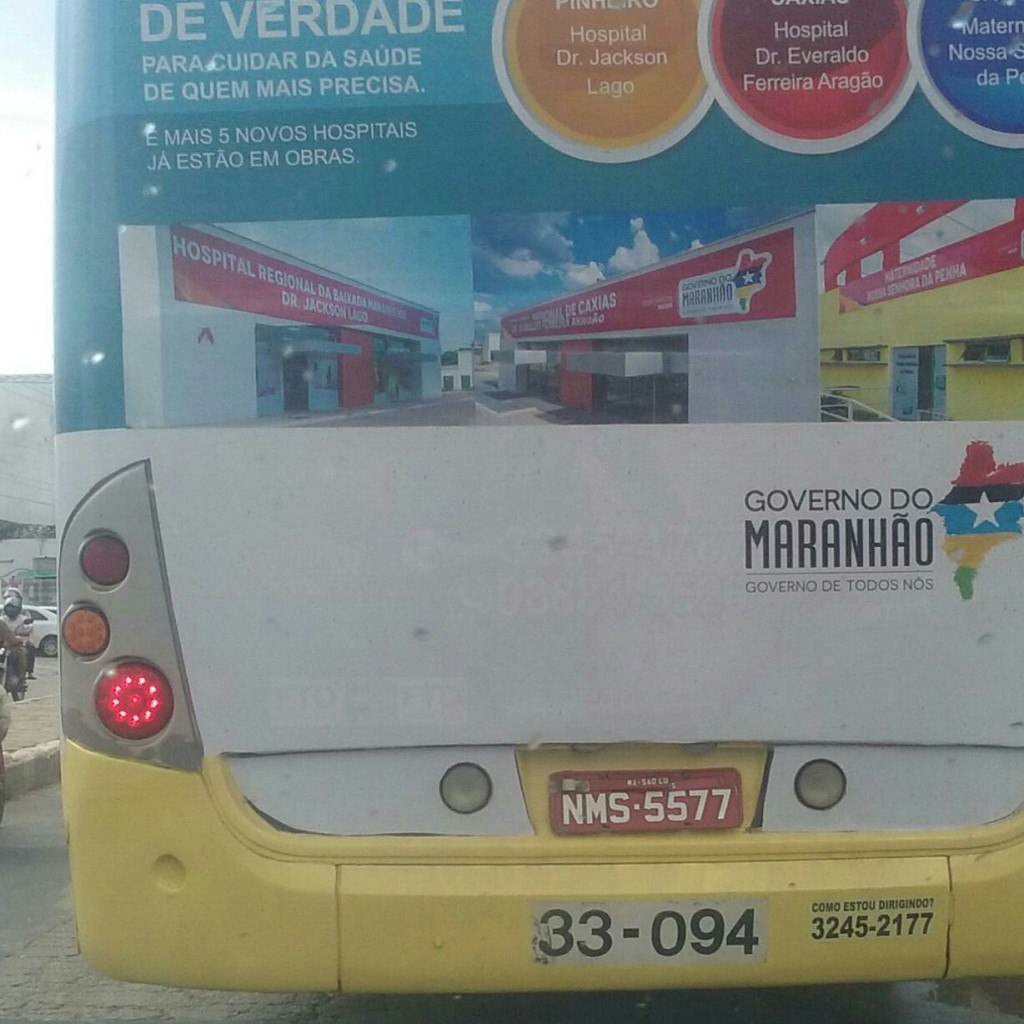 A publicidade em ônibus também tem sido uma das ferramentas de mídia usada pelo Governo. Com relação a esse tipo de publicidade, conhecida como busdoor, o Blog recebeu uma imagem intrigante. Na peça publicitária é notório um grande desperdício na parte inferior, contendo apenas a logomarca do Governo do Maranhão e um grande espaço em branco. Enquanto, na parte superior aparece a imagem incompleta, comprometendo o texto informativo.