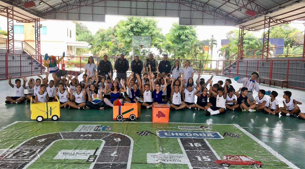 A atividade foi aplicada aos alunos do 4º ano do Ensino Fundamental, que receberam orientação sobre os cuidados e respeito às leis de trânsito. Com a peça “Sr. Manoel, o motorista legal” e a participação da “Fadinha Bibi” e do “Palhaço Bafômetro”, os educadores reforçaram, de forma lúdica, a importância do uso dos dispositivos de segurança nos veículos, como o cinto, capacete e o uso da cadeirinha para crianças, além dos cuidados ao atravessar uma rua, optando sempre pela faixa de pedestre.