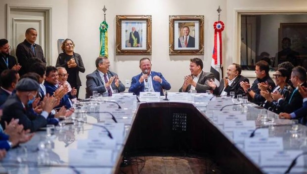 O deputado federal Rubens Pereira Jr. (PT-MA) afirma que o clima foi de “muita harmonia”, com uma série de elogios a Dino. Segundo ele, Brandão também aproveitou o evento no Palácio dos Leões para assumir a liderança do grupo.