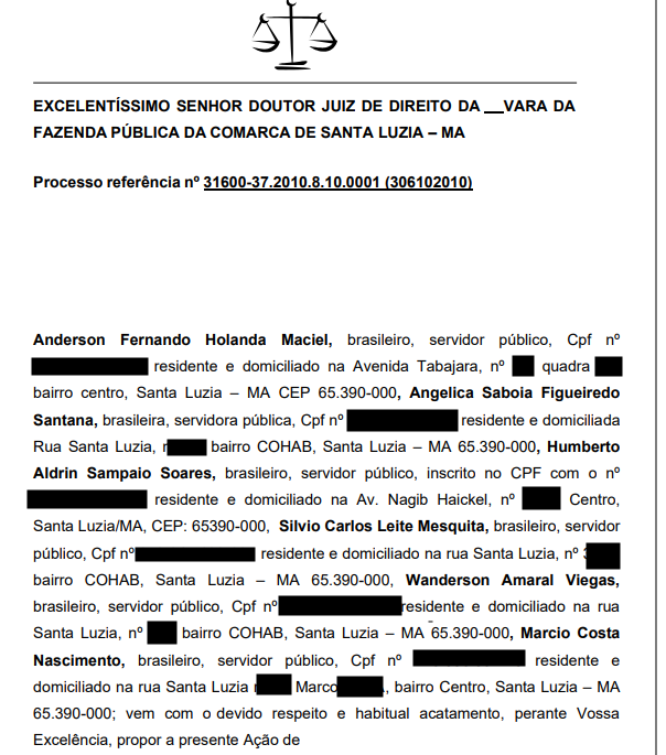 Os autores do processo não possuem domicílio na referida Comarca, mas sim em São Luís, entretanto inseriram um endereço de Santa Luzia no aplicativo do INSS e na procuração dada ao advogado, direcionando, assim, a distribuição dos autos para justiça do município.