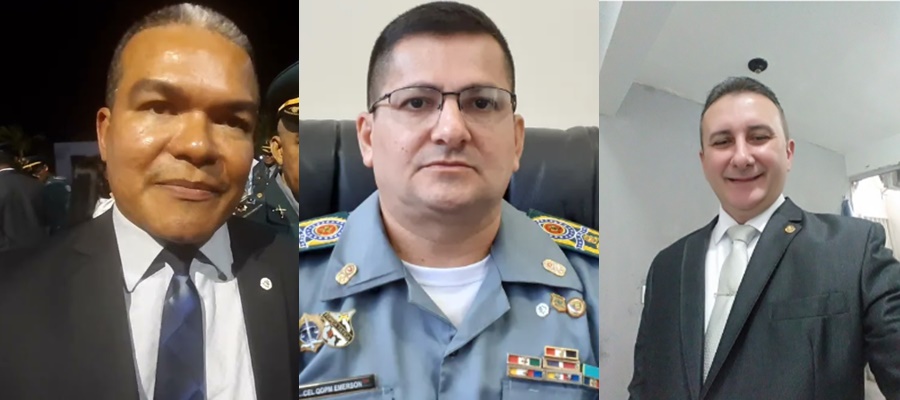 Secretário de Segurança Pública do Maranhão, coronel Sílvio Leite, comandante geral da Polícia Militar, coronel Emerson Bezerra, e o secretário-chefe do Gabinete Militar, coronel Humberto Aldrin.