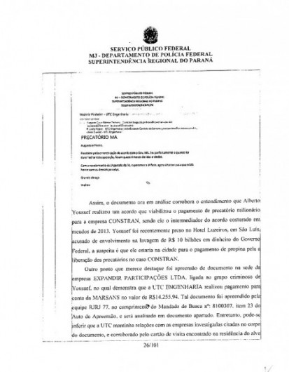 O precatório era relativo a serviços de terraplanagem e pavimentação da BR-230. Era o quinto na ordem cronológica, mas de acordo com a contadora, após o pagamento da propina a construtora “furou a fila” e o pagamento foi liberado parceladamente.