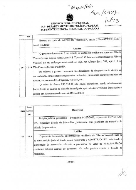 “Observa-se nas filmagens que Alberto Youssef chega ao estabelecimento portando duas malas pretas idênticas e o sr. Marco Ziegert com uma mala de outra tonalidade, além de uma caixa sob um dos braços”, diz o relatório da PF.