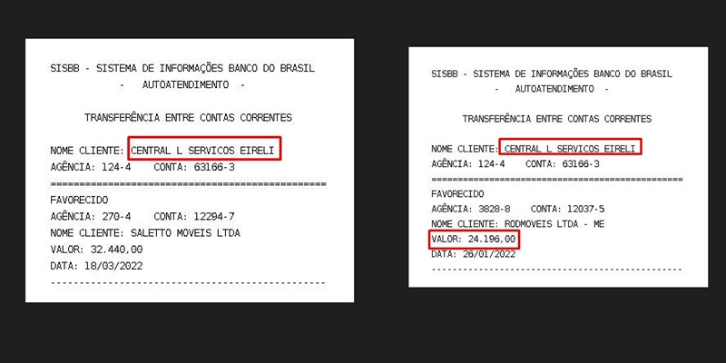 De acordo com os extratos, a Central pagou R$ 6.010,52 mil para Mascarello e P. Escritório; R$ 6.628,51 mil para Athor Bicicletas Ltda, R$ 12.522,98 para Indústria M. Pelaio Ltda; R$ 10.532,26 mil para W.J. Tubos 1 Móveis Ltda, R$ – 32.440,00 mil para Saleto Móveis Ltda, e R$ 24.196,00 para Rodomoveis Ltda. Todas são fornecedoras da loja de móveis do prefeito.