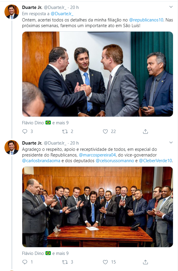 Seguindo essa pretensão, Duarte se filiou no Partido Republicanos há cerca de 2 dias. A filiação também foi anunciada pelas redes sociais do deputado.