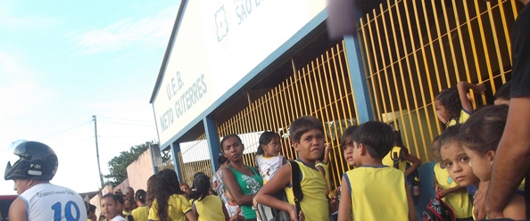 É publico e notório, que o calendário escolar da Secretaria de Educação de São luís começou atrasado (25 de fevereiro), o que requer o empenho maior de todos, entretanto nas UEB Neto Guterres e Eupideo (ambas situadas no bairro do angelim – no mesmo prédio), só tem aula no máximo 04 vezes por semana com saídas sempre as 10h e 30 min no período matutino durante a tarde é melhor nem comentar, sempre há uma desculpa (não tem água na escola, hoje é dia de faxina geral, o professor faltou e não há substituto, tem água mais tá impropria para o uso, hoje não tem merenda, e a mais nova desculpa: escola tá fechada e ninguém tem a chave para abri-la – como aconteceu mais uma vez hoje, conforme as fotos, dentre outras desculpas dadas para justificar a irresponsabilidade dos gestores.