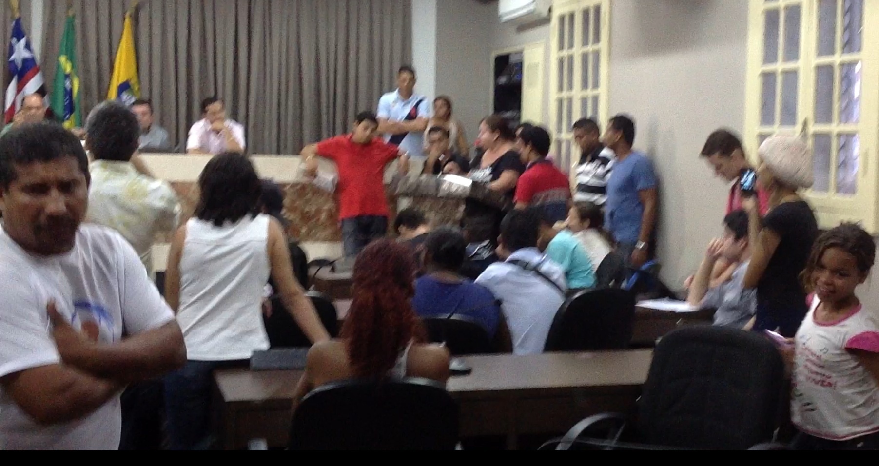 Manifestantes que invadiram a Câmara Municipal quase saem no tapa com o presidente em exercício, vereador Astro de Ogum.
