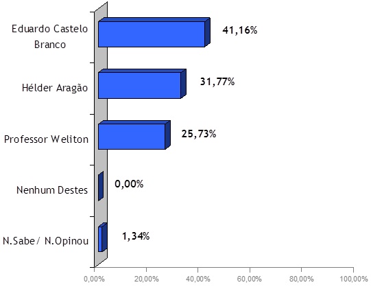 Na espontânea, um segundo cenário, Eduardo Castelo Branco tem 30,65%, configurando uma queda mínima que não interfere no eleitorado da estimulada.