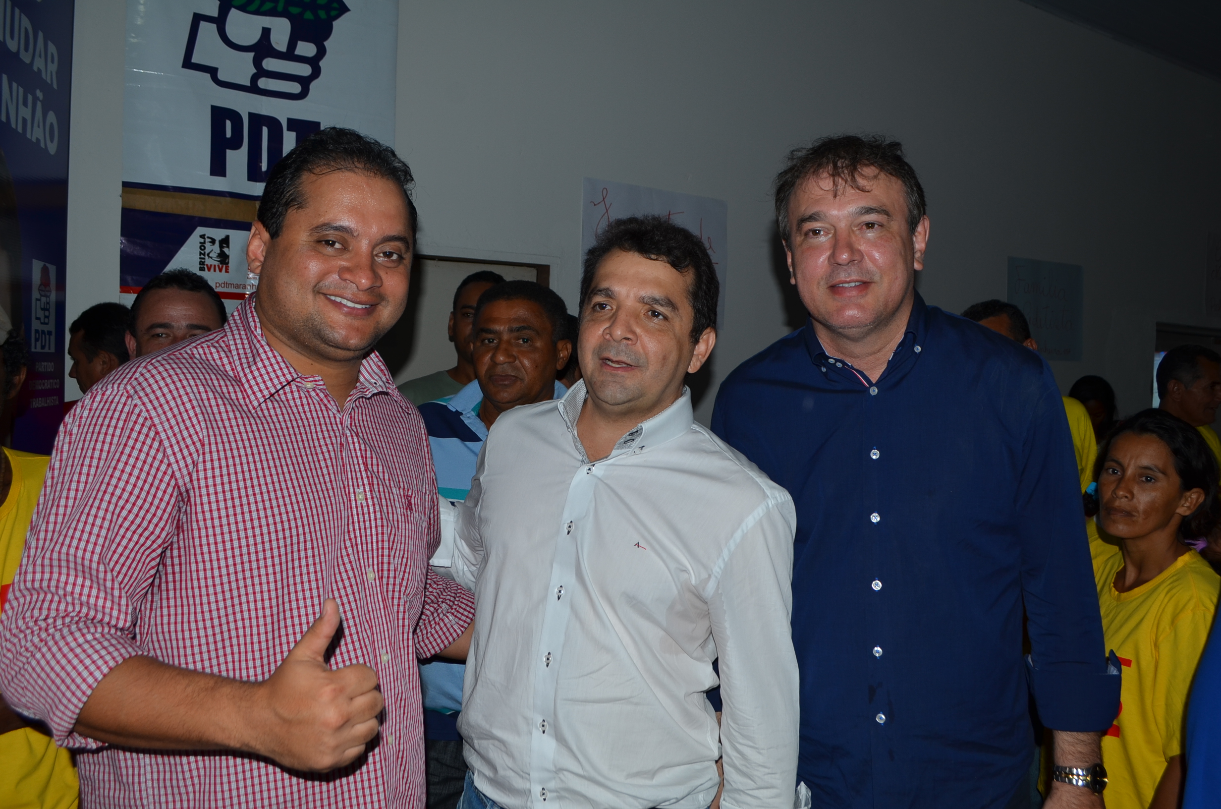 O deputado federal Weverton Rocha, Hilton Gonçalo e o deputado estadual Carlinhos Amorim no Encontro Regional do PDT em Pinheiro