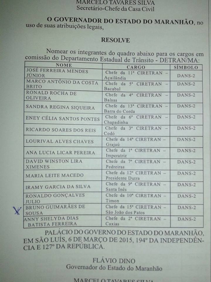 O novo Chefe da 15ª Ciretran, Bruno Guimarães de Sousa, teve o nome publicado no Diário Oficial do Estado. Ele fez campanha contra o comunista nas últimas eleições.