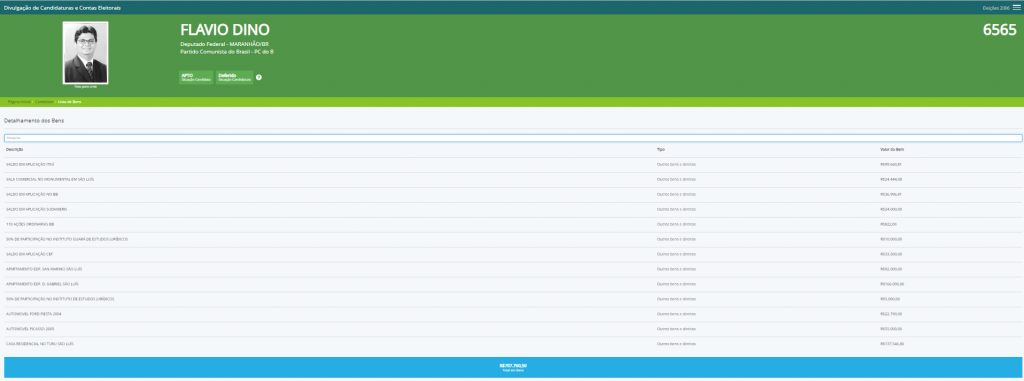 Após entrar para vida pública, patrimônio pessoal do governador Flávio Dino (PCdoB) cresceu de forma bastante significativa, segundo dados do Tribunal Superior Eleitoral.