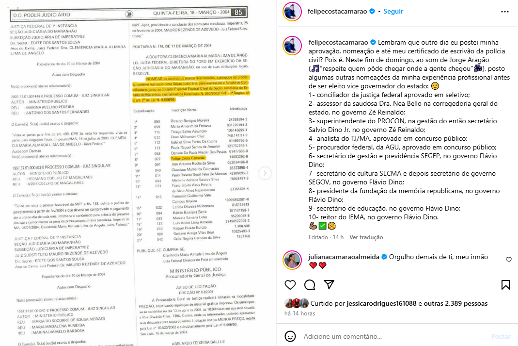 Em meio ao caso polêmico que envolve mensagens de cunho ofensivo contra a deputada estadual Mical Damasceno, o vice-governador do Maranhão, Felipe Camarão (PT), usou as redes sociais para destacar seu currículo profissional.