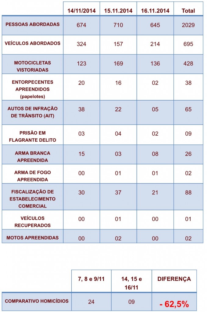 Embora diversos crimes assombram a população de São Luís, o comando geral acredita que as ações da Operação Restauração da Ordem, deflagrada pelo CPE, contribuiu para a redução dos índices criminais na região metropolitana, assim como o aumento da sensação de segurança perante a sociedade maranhense. É mole?