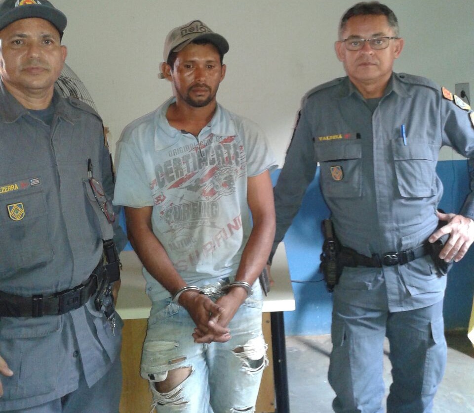 Foi dado voz de prisão e apreendida a arma de fogo em cima de uma palhoça no fundo do quintal de casa do acusado. Ele conduzido para Delegacia para serem tomadas as providências necessárias.