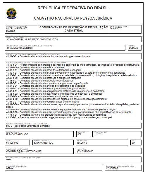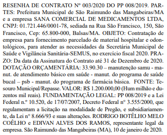 A empresa Sana Comercial de Medicamentos LTDA., firmou um contrato milionário com a Prefeitura de São Raimundo das Mangabeiras. A empresa fica localizada na Rua São Francisco, na cidade de Balsas.