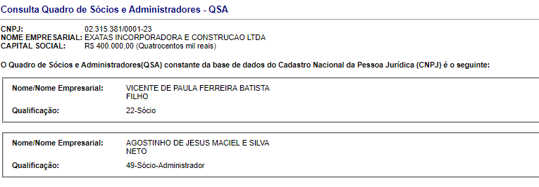 De propriedade de Vicente de Paula Ferreira Batista Filho e Agostinho de Jesus Maciel e Silva Neto, a Exata deverá prestar serviços de 12 junho a 31 de dezembro de 2018, ou seja, durante 6 meses.