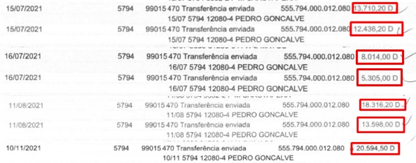 Extrato bancário mostra que entre julho e novembro de 2021 a PG LINC recebeu R$ 91.974,10 mil dos cofres públicos do Fundeb. No período, foram feitos 7 repasses de verbas da Educação.
