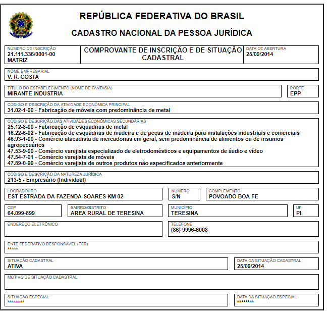 O contrato foi firmado com a V.R Costa, de nome fantasia Mirante Indústria, localizada em Teresina, no Piauí.