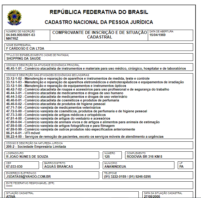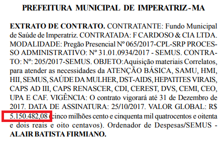 A Prefeitura de Imperatriz firmou um contrato milionário com a F.Cardoso & Cia, que tem como nome fantasia Shopping da Saúde, localizada em Ananindeua, no Pará.