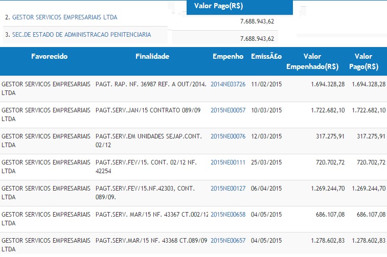 Um levantamento do portal da transparência acusa que a Gestor tem recebido repasses do governo regularmente desde fevereiro até o mês atual. O valor mais caro chega a R$ 1.722.682,10 pagos no mês de março.