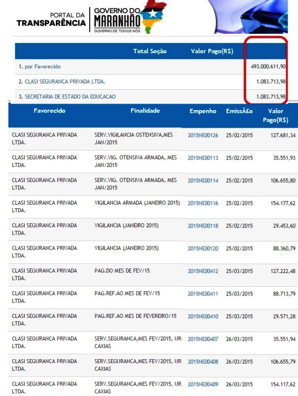O Clasi Segurança Privada Ltda, que opera na Prefeitura de São Luís, também foi agraciada na Secretaria de Estado de Educação, em poucos meses com valores estratosféricos.