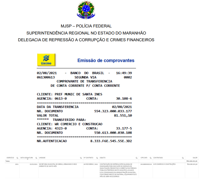 “Ou seja, é possível inferir que parte da “propina” paga pela empresa WR COMERCIO E CONSTRUÇÃO em razão da formalização de contrato com a Prefeitura de Santa Inês tenha sido os R$ 50.000,00 depositados em favor da empresa IRMÃOS SILVA SALES, responsável pela venda da casa ao Prefeito”, concluiu a PF.