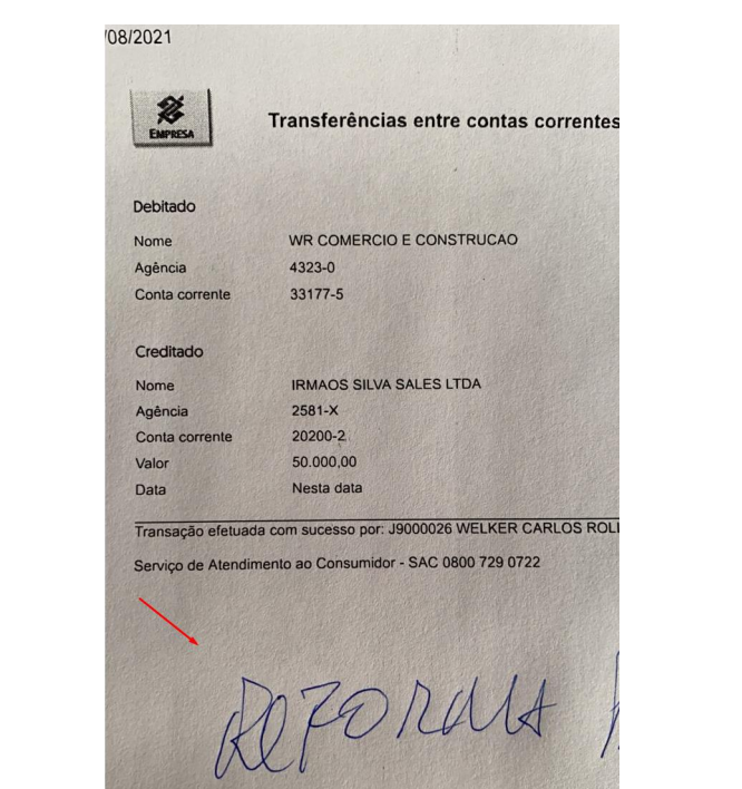 Também foi verificado que a construtora de Welker recebeu o pagamento de R$ 81.551,10 mil do Executivo no dia em que fez a transação bancária para Irmãos Silva Sales.