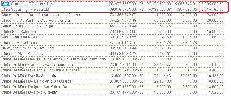 Já a Clasi Comércio abiscoitou o valor de R$ 2.015.199,90. Os pagamentos estão sendo feitos rigorosamente em dia. A prefeitura pode atrasar o pagamento de fornecedores e funcionários, mas as empresas de Ricardo não podem ser esquecidas.