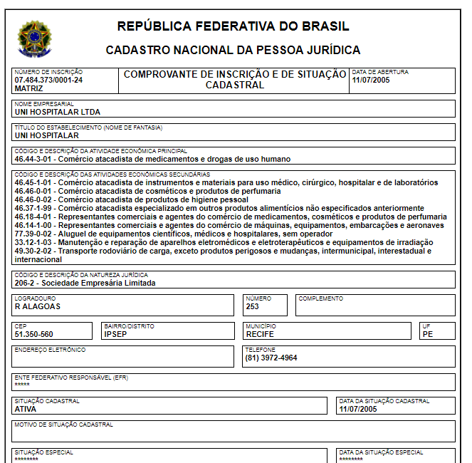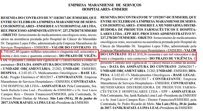 Segundo o Diário Oficial, a empresa pública contratou a Uni Hospitalar, que possui sede em Recife (PE), e a Mundifarma Distribuidora, que fica localizada em Juiz de Fora (MG) pelo valor exorbitante de R$ 4.812.492,96 milhões.