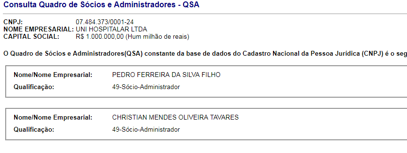 Para executar o serviço, a Uni Hospitalar, que pertence á Pedro Ferreira da Silva Filho e Christian Mendes Oliveira Tavares, vai receber R$ 4.750.682,40 (quatro milhões setecentos e cinquenta mil, seiscentos e oitenta e dois reais e quarenta centavos).