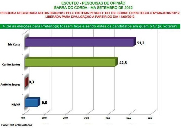 A pesquisa está registrada no Tribunal Regional Eleitoral (TRE-MA), sob o número MA-187/2012.