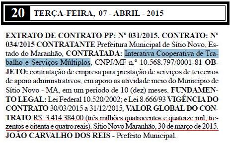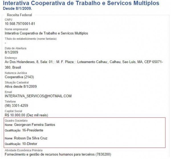 Detentora de um capital social de apenas R$ 10 mil reais, a Interativa Cooperativa de Trabalho e Serviços Múltiplos, já arrematou até o início de maio deste ano, com dispensa de licitação, mais de R$ 20 milhões em contratos firmados com prefeituras do interior para fornecer mão de obra terceirizada para funcionamento dos órgãos públicos municipais.