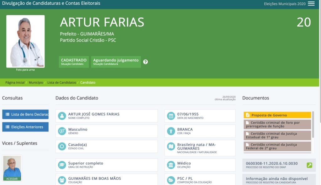 Querendo continuar enganando as pessoas de Guimarães de que é candidato, mesmo com duas recentes decisões da Justiças o mantendo inelegível, o ex-prefeito Artur Farias cometeu um sério crime: enviou à Justiça Eleitoral documentos do seu filho para registro de candidatura.