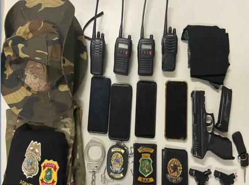 De acordo com os policiais militares, os homens também são suspeitos de casos de extorsão contra as pessoas da cidade. Foram apreendidos uma arma, distintivos, carteiras, uma algema, rádios comunicadores, além de outros objetos semelhantes aos usados pela polícia.