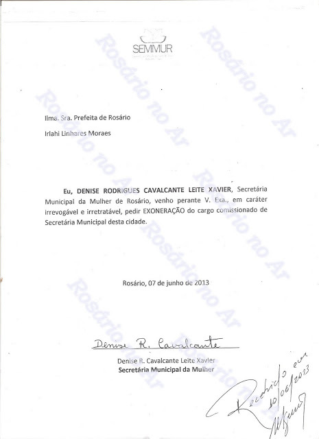 Mas não para por aí. Os tentáculos da família Cavalcante ainda continuavam em Rosário, até a ex-secretária municipal da mulher pedir exoneração na última sexta-feira (7).