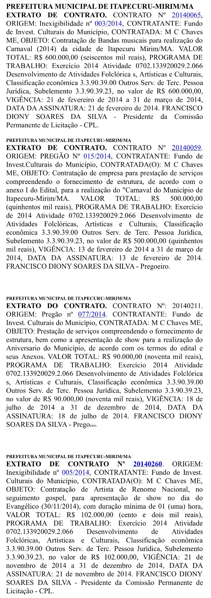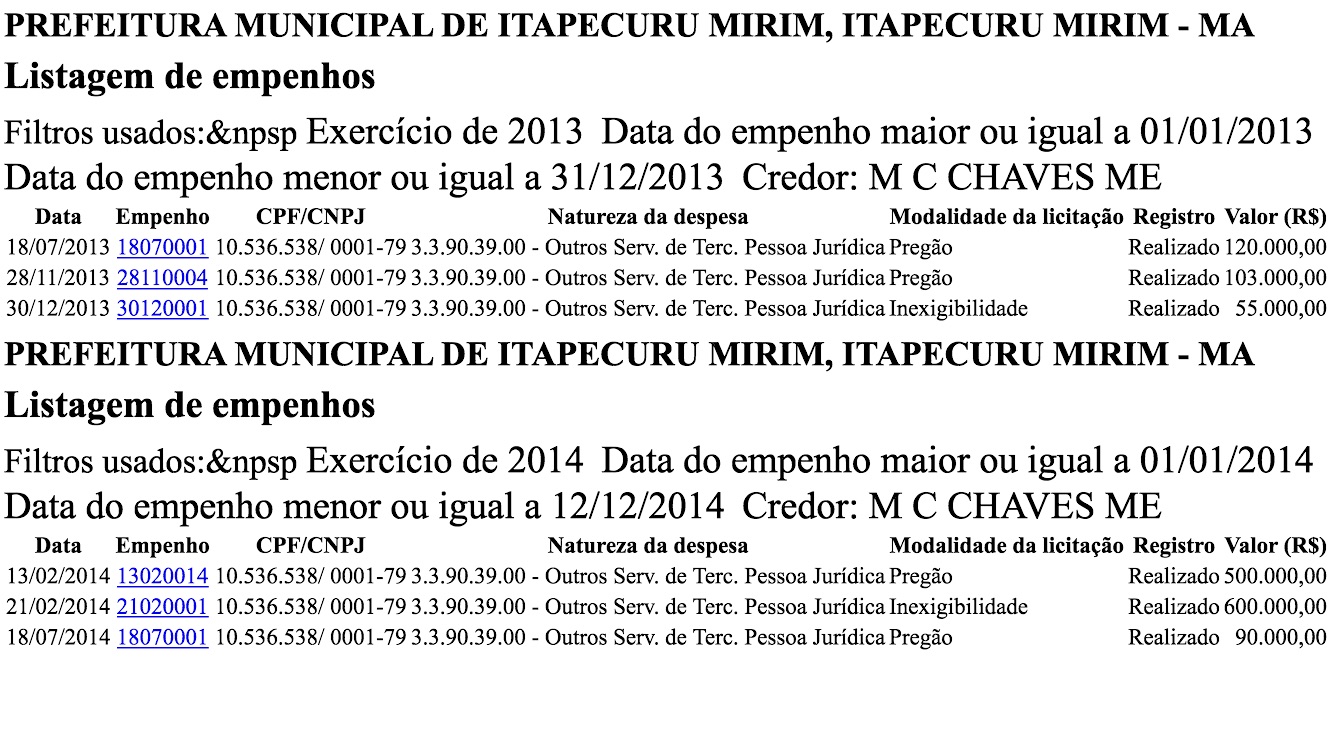 As empresas T.T.O Borges-ME e a MC Chaves que carrega o nome fantasia JM Produções de propriedade da família Maranhão, são apenas algumas de muitas empresas aliadas ao prefeito que vem faturando milhões no esquema escandaloso de contratos irregulares.