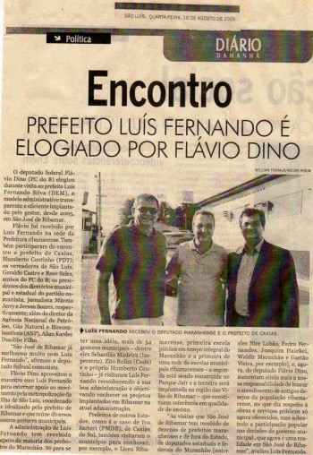 Ribamar Alves não é o primeiro membro da oposição a elogiar a administração de Luís Fernando Silva (PMDB) à frente da Prefeitura de São José de Ribamar. O presidente da Embratur, Flávio Dino (PCdoB), provável adversário do peemedebista na disputa pelo Governo do Estado em 2014, também já destacou sua passagem como prefeito. “São José de Ribamar já melhorou muito com Luis Fernando”, disse, em agosto de 2009, após uma visita à cidade junto com o ex-prefeito de Caxias e seu patrono político, Humberto Coutinho (PDT).