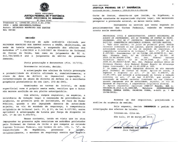 A liminar foi obtida após o juiz federal Nelson Loureiro dos Santos indeferir igual pedido, no mês de março, na Justiça Federal em São Luís. Veja: