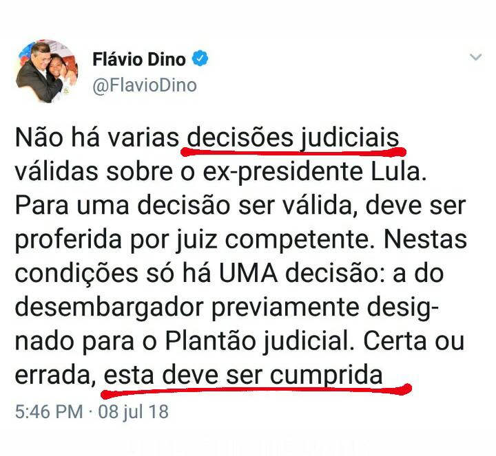 “Ordem Judicial deve ser cumprida”. Esta é uma das frases usadas por Flávio Dino (ex-juiz federal) recentemente em uma de suas postagens nas redes sociais sobre o caso Lula, porém, o mesmo não atribui a frase ao seu estado, pois cerca de 150 candidatos aptos no concurso da Polícia Militar ganharam judicialmente o direito de adentrar ao Curso de Formação de Soldados, mas não tiveram suas liminares cumpridas.