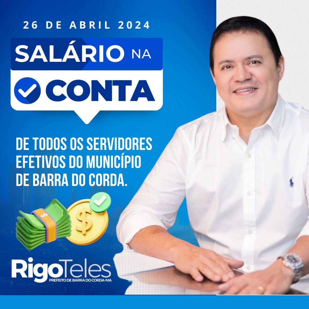 Hoje, dia 26 de abril de 2024, os salários de todos os concursados está nas contas.