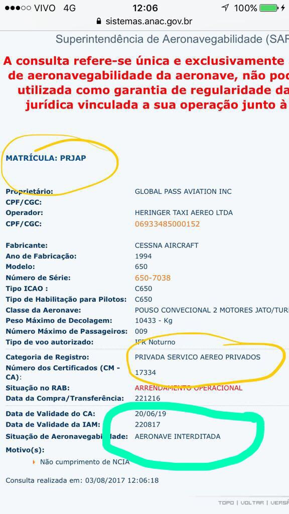 O contrato firmado, no dia 26 de julho, entre o governo e a Heringer Táxi Aéreo, localizada em Imperatriz, começou a vigorá desde a terça-feira (2), no entanto a cúpula do governo terá que aguardar um pouco mais para fazer o uso da aeronave. Pois essa está proibida de voar.