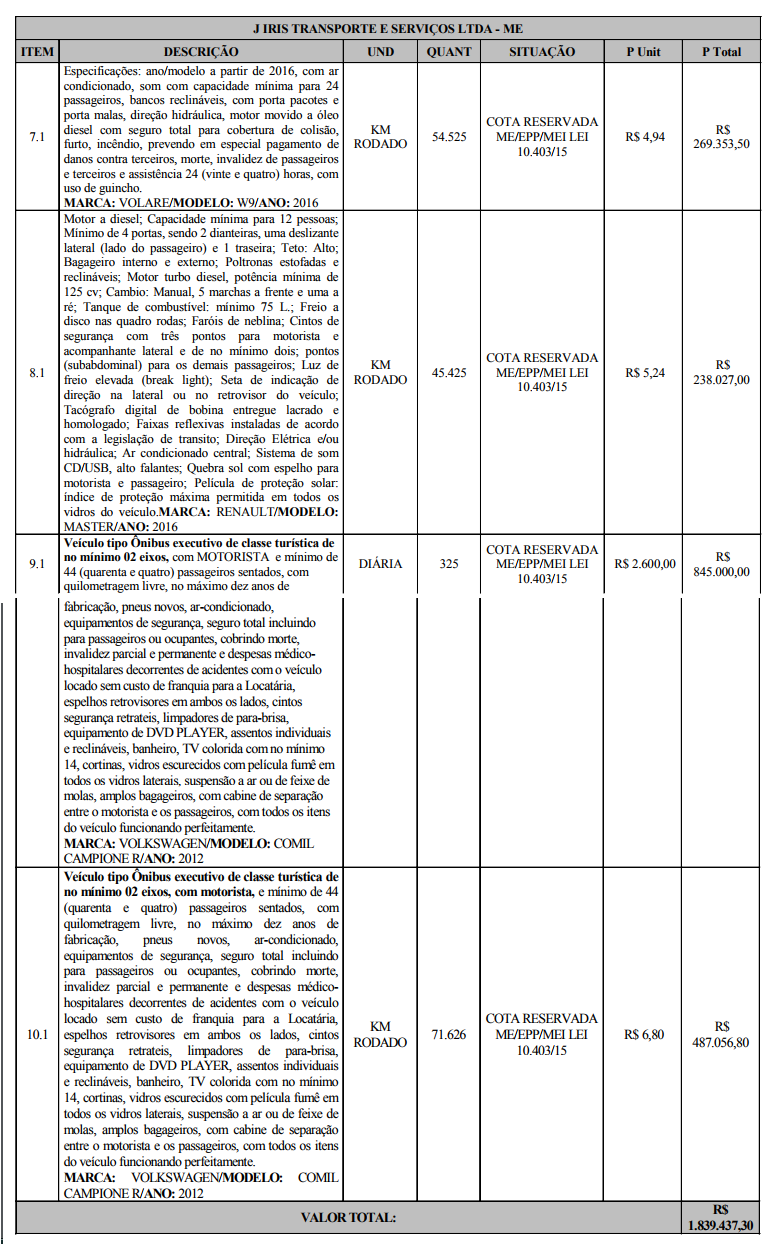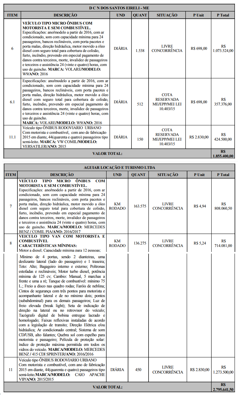 O contrato milionário foi dividido entre várias empresas do ramo, que são a Investcar Veículos Ltda; Tcar Locação de Veículos Eireli-EPP; Localiza Rent a Car S/A; Aguiar Locação e Turismo Ltda; J Iris Transporte e Serviços Ltda-ME; e Severino Martins de Lima.