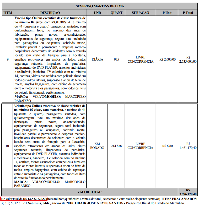 R$ 13.522.720,50 (treze milhões,quinhentos e vinte e dois mil, setecentos e vinte reais e cinquenta centavos). Esse é o valor exato que o governo Flávio Dino (PCdoB) vai gastar no ano de 2018 em locações de veículos.