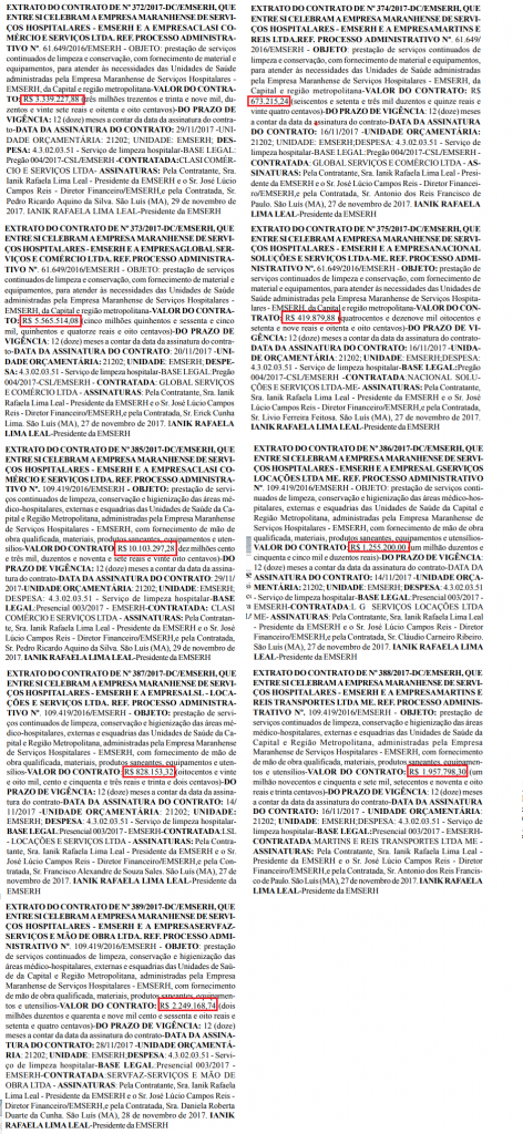 Para executar o serviço, a EMSERH contratou 7 empresas com valores milionários. Entre elas está a Clasi Comércio e Serviços, localizada em São Luís, que firmou dois acordos contratuais, que somados dão R$ 13.442.525,16 milhões.