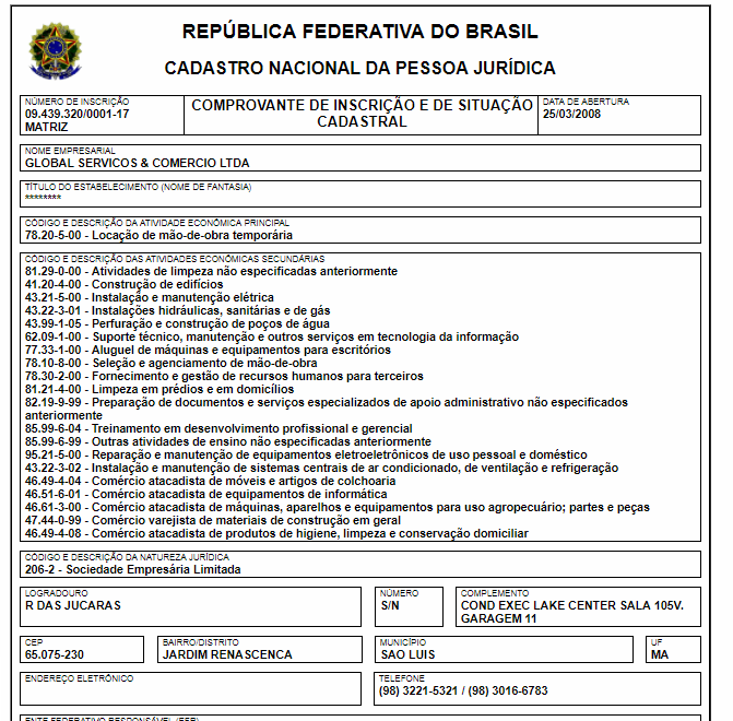 Já a Global Serviço, com sede em São Luís, faturou um contrato de R$ 5.565.514,08 milhões.