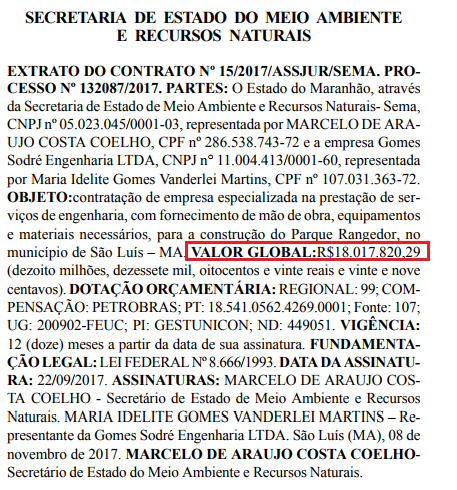 O governo Flávio Dino, por meio da Secretaria de Meio Ambiente e Recursos Naturais (Sema), pretende gastar R$18.017.820,29 (dezoito milhões, dezessete mil, oitocentos e vinte reais e vinte e nove centavos) em obra do Parque Estadual Sítio do Rangedor, em São Luís.
