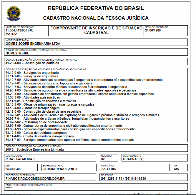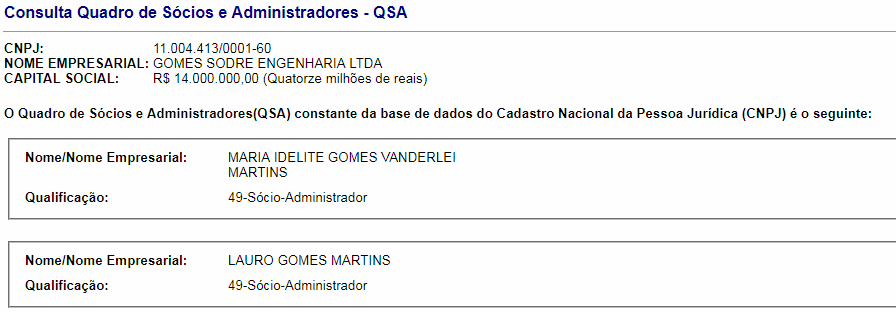 A empresa contratada para executar a construção é a Gomes Sodré Engenharia Ltda, de propriedade de Maria Idelite Gomes Vanderlei Martins e Lauro Gomes Martins.