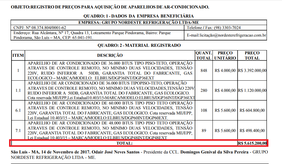 O governo Flávio Dino firmou um contrato milionário com o Grupo Nordeste Refrigeração Ltda, localizado no Parque Pindorama, em São Luís.